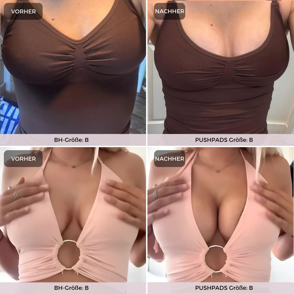 Absolut! PushPads gibt es in verschiedenen Größen und sie passen sich flexibel deiner Brustform an – für kleine, mittlere und größere Oberweiten.