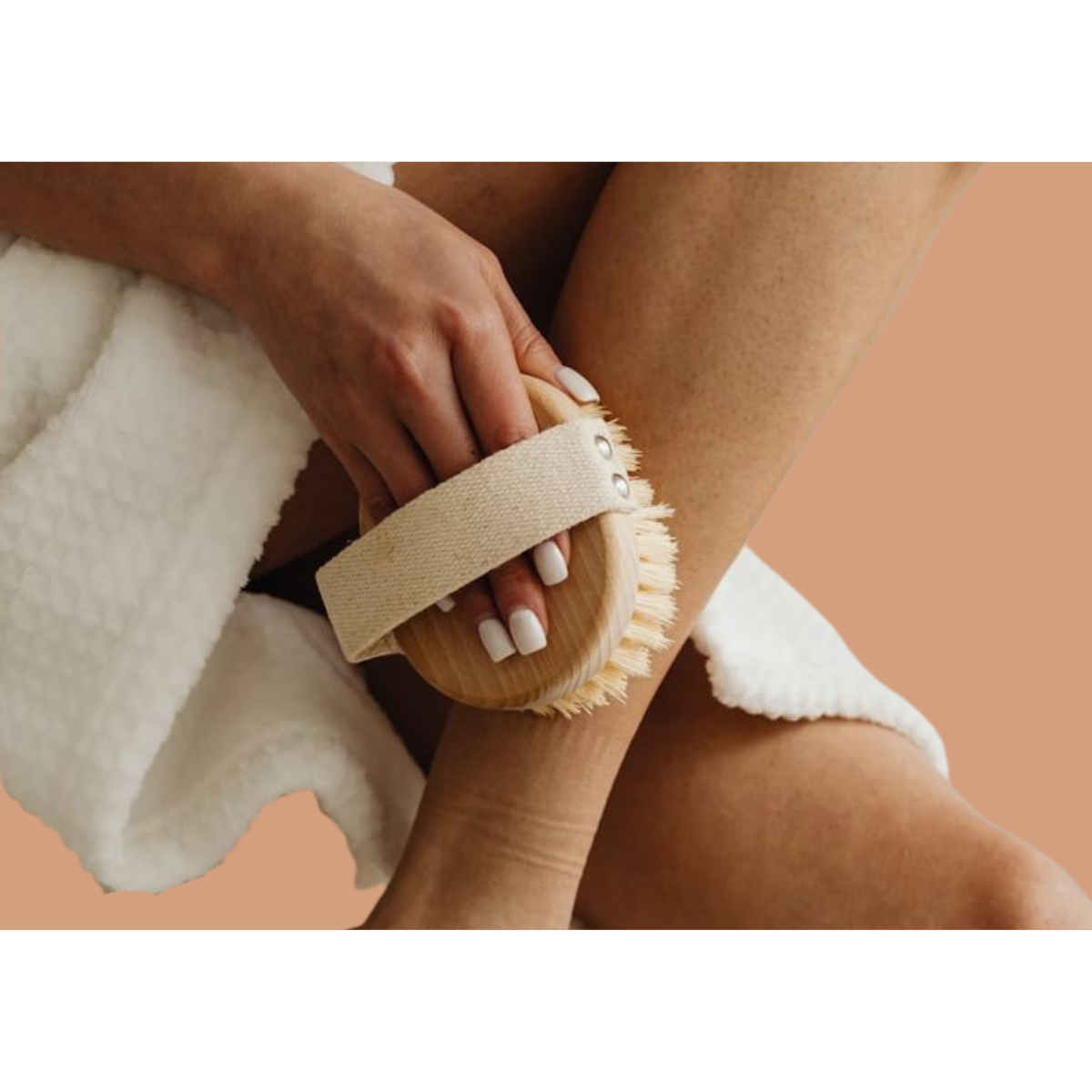 Massiere dein Bein mit einer Massagebürste in kreisenden Bewegungen. Das hilft, abgestorbene Hautzellen zu entfernen, regt den Lymphfluss an und glättet zusätzlich das Hautbild.